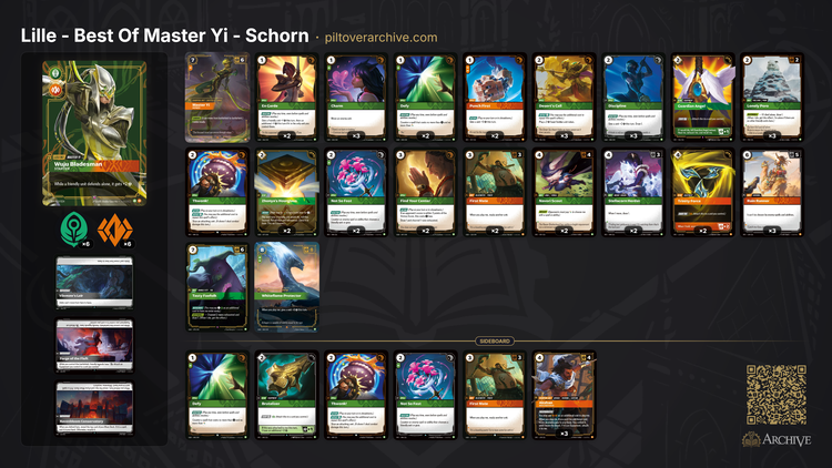 Το meta της Lille είχε σαφείς κατευθύνσεις, με τις Kai'Sa Daughter of the Void και Irelia Blade Dancer να αποτελούν βασικούς πυλώνες. Ο Schorn προσαρμόστηκε σε αυτό, ενισχύοντας το deck του με επιλογές που μπορούσαν να αντέξουν την πίεση και να ανταποδώσουν αποτελεσματικά.